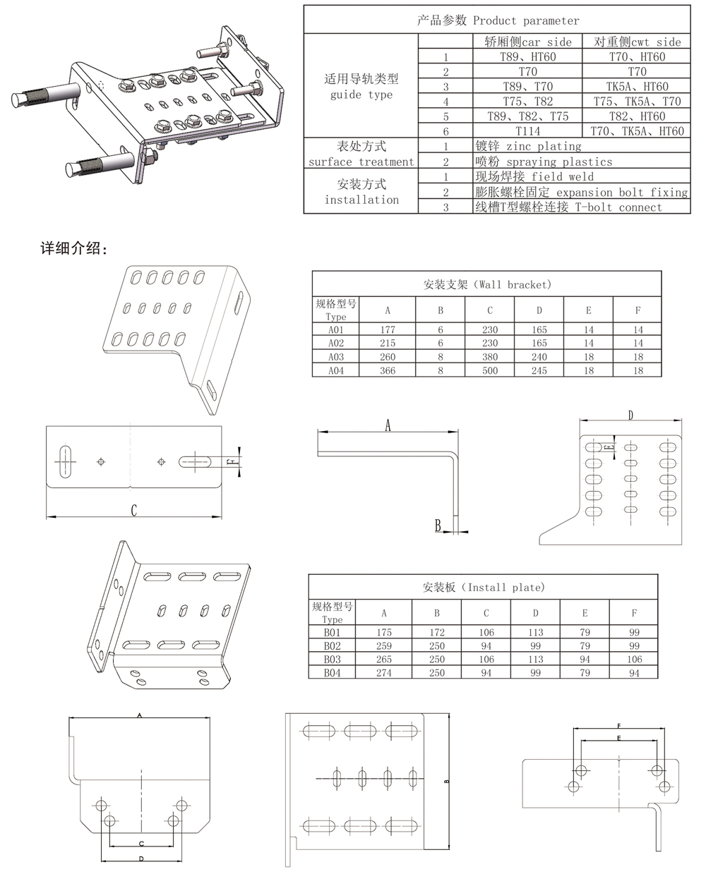 轿厢和对重导轨支架